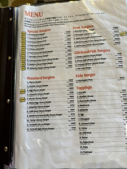 次回はアップルモッツァレラ、ブルーベリージャムクリームチーズバーガー、アプリコットジャムクリームチーズバーガー、ビーフ&ブロッコリーチーズバーガー(1番人気とのこと)、オーバーウェルムバーガー、季節のバーガー、ライス系、気になるサイドを食べたい。