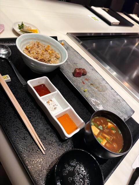 黒毛和牛のフィレとライスもガーリックライスに変更して頂きました。パフォーマンスも素敵で✨見ているだけでも楽しい◡̈♥︎