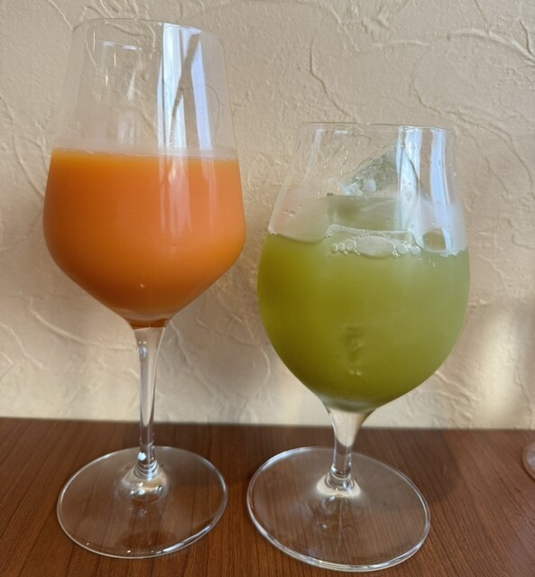 ・ぶどうジュース、りんごジュース、オレンジジュース、緑茶