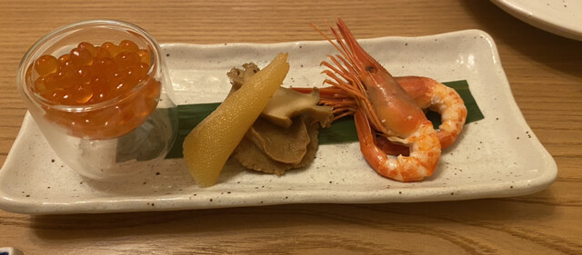 お造り4点盛り タコ まぐろ赤身 サケのルイベ