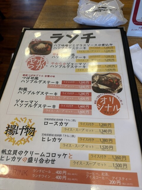 メニューが洋食好きには幅広く、ハンバーグのソースやトッピングなど好みに応じて選べるのが特徴