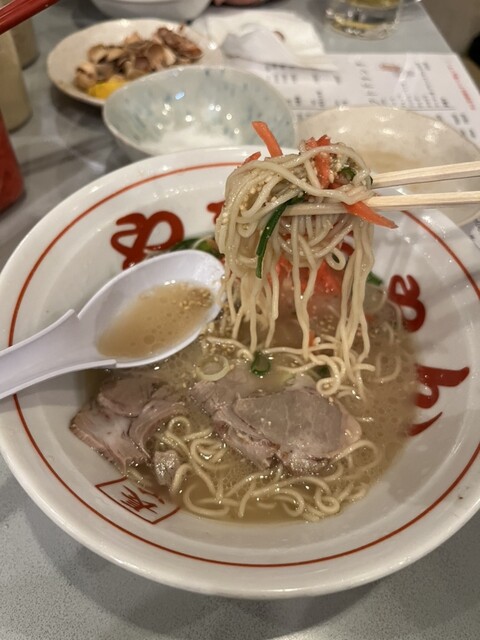 20分ぐらい待って入店。お通しはおでん。大根は出汁が染みて美味しい!2件目だったので、料理は少なめに頼んだけど、どれも美味しい!海老豚肉巻きは珍しい絶品!〆にラーメン。他の客はラーメン目当てに来てる人も多く間違いない味!サイコーの福岡の夜でした。