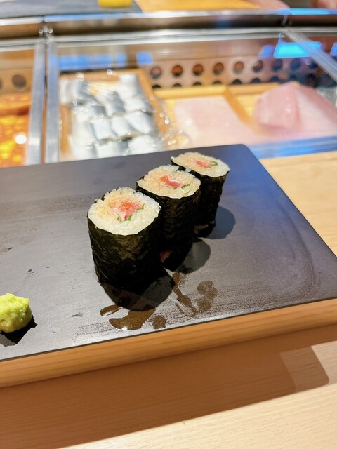 ★をつけたのが特にお気に入り。えびとほたては身がむちむちで幸せな食感。中トロだけは個人的には脂が重かったけど、どれもはずれなく美味しい。お米はふつうの酢。
