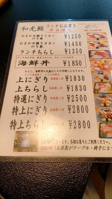 11回目です♪「和光鮨」東船橋 今回は特上ちらし(^o^)♪ 週末ランチメニュー無しでも安定旨し♪ 現金払いで 茶碗蒸しお味噌汁付き〜(^o^)♪