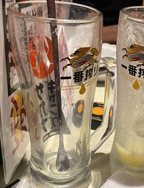 覚え書き『キリン一番搾り』生ビール中ジョッキ♪夜の呑みに備え朝からのスポーツ中にも水分調整を完璧に喉をカラカラにして来店♪一杯めは皆んなで愉しい気分を共有するのにシャンパンで乾杯♪あとはガブガブ美味しく生中♪ごちそうさまでした♪