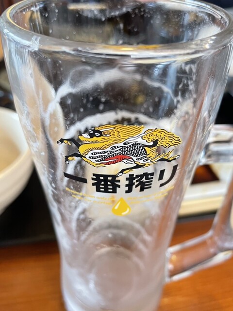 覚え書き『キリン一番搾り』生ビール中ジョッキ♪スポーツ帰りにカラカラの喉を潤すべく来店♪リーズナブルでボリューム満点なランチを目当てに混むようなのでテーブル席の確保のため数日前に予約♪美味しく完食♪ごちそうさまでした♪