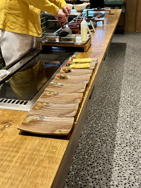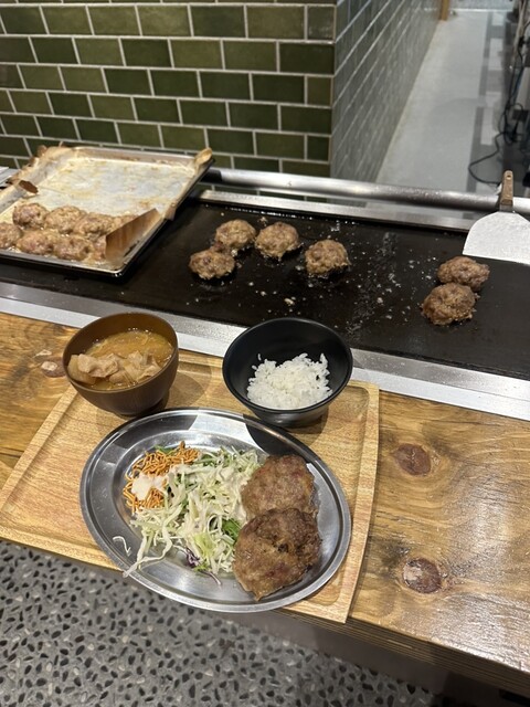 ハンバーグと巻き立て出汁巻き玉子は目の前で焼いてくれます