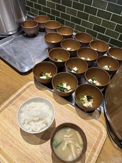 ご飯とスープおかわり自由で自分の好きな量を取りにいけるよ