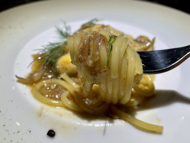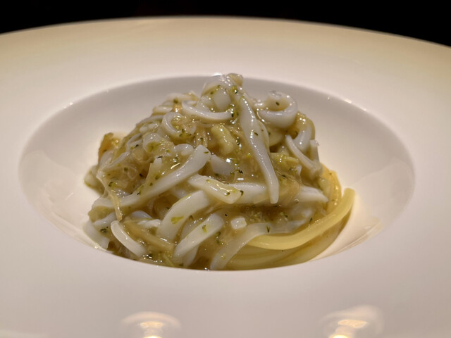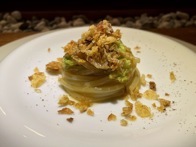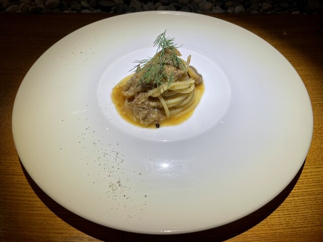 いつも〆の中に盛り込まれているパスタが、今回は〆に入れられなかったためコース内に組み込んだとのこと。それぐらいパスタ好きのシェフ。(ただチーズが苦手)