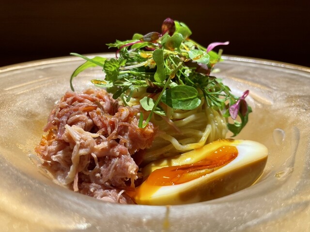 毎年恒例の冷やし中華。今年は根菜ベースのタレに、マスタードとブラックペッパーが効いたピリ辛仕立て。鮪のタタキの組み合わせが新しくて面白かったです。