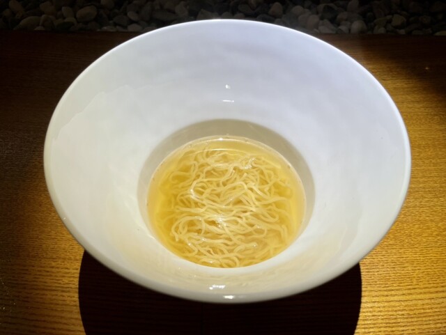 今宵のお口直しは能登のもずくを使った冷たい酸辣湯。ベースは浅利出汁と上湯、そこにライム果汁の酸味が加わり、さっぱり胃袋がリセットされました。