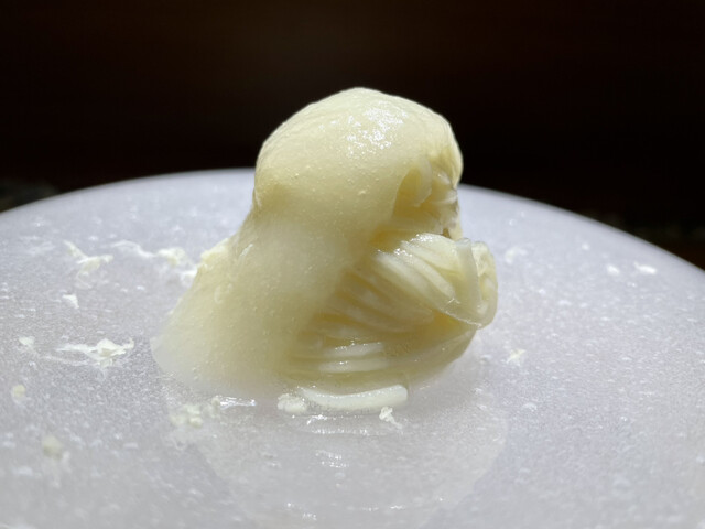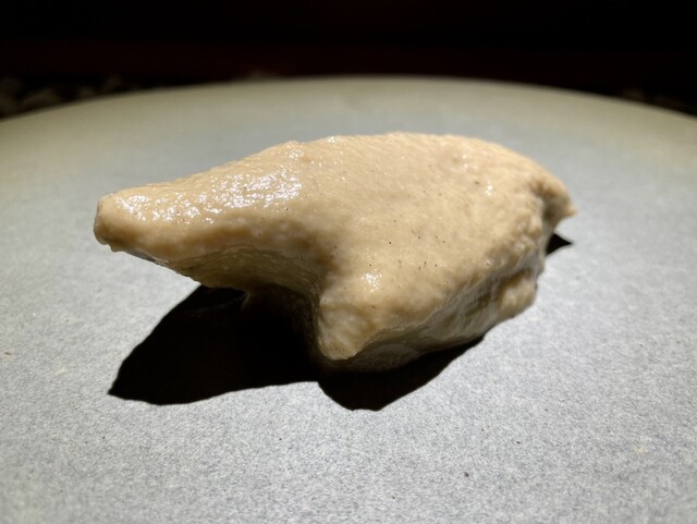 そういえば、昨年は11-12月の時期だけ来れてなかったので、隼の白トリュフは初体験。濃いめをはじめ、いくつかの料理にオプションで付けられるシステムになってます。仕入れ値で価格が変動する白トリュフのこの日のお値段は1,800円/g。どうしようかな〜と悩みつつトリュフの写真を撮っていたら、「写真を撮ったなら頼むしかないよね?」「今週はその値段だけど来週はもっと上がるかも?」と前から後ろから唆され、気付けば「濃いめに適量かけてください」と口が勝手に動いてました。とはいえ、後悔してませんし、なんなら清々しい気分です。この空間、やり取り含めて隼が大好きなんでしょうね♥