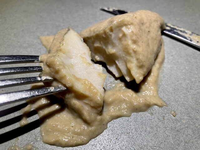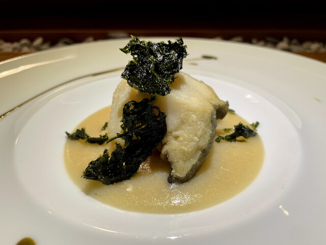 昆布〆した鰆の蒸し物。浅利出汁と上湯を合わせたソースで。シェフはいつも調理方法を丁寧に説明してくれるんですが、途中で理解不能領域に入っちゃうんですよね。俗に言う天才です。