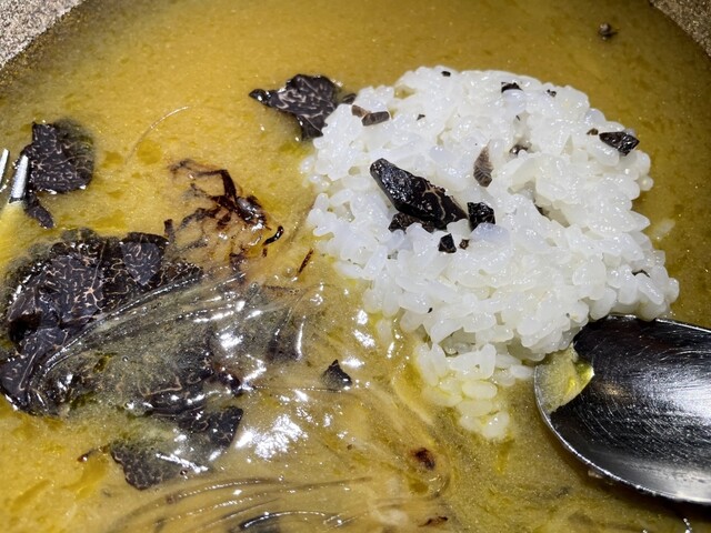 唯一無二の隼さんのフカヒレ。1-2月はデフォルトでイタリア黒トリュフが削られます。隼さんのいい人キャンペーンが大盤振る舞いすぎて、ご飯にもトリュフ入ってる(笑)最高です!!