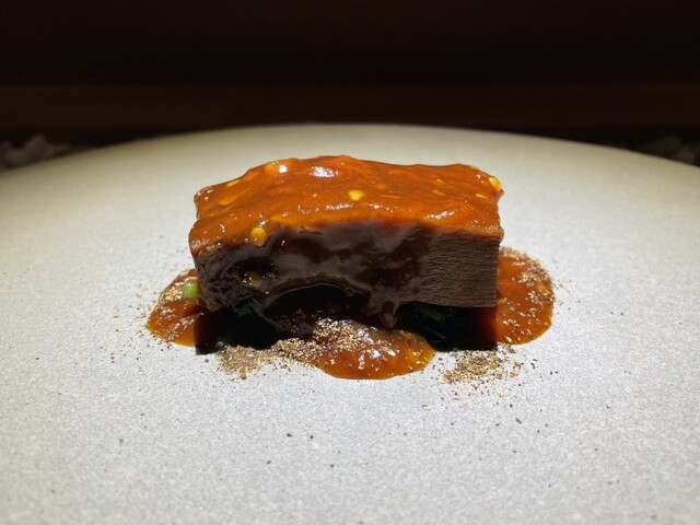 国産牛舌の中国味噌柔らか煮。フルーツトマトの優しい酸味で、コース終盤でもペロリといけちゃう。