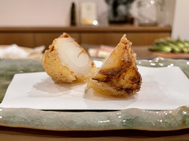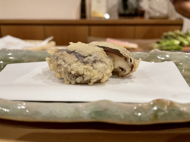よくある水分たっぷりジューシーなタイプではなく、身が締まった静岡の椎茸。カリッと揚がったクリスピーな衣と相まって、スナック感覚の椎茸でした。好き。