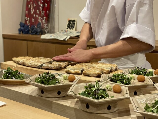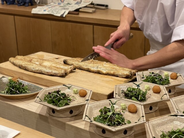 お弟子さんによる芸術作品のような細やかな切れ目。太さもあって、とてもジューシーでした。