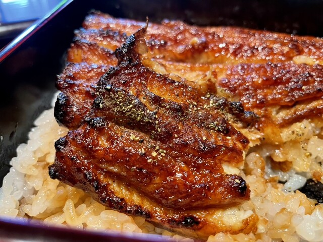 まずは白焼が到着。表面はサクサク、身はふっくら柔らかくて美味しいです。何もつけなくても鰻の味が濃いですし、やはり食感が最高。脂の旨みもしっかり感じられて、めちゃめちゃ好みの焼き方でした。皮まで旨い、、、