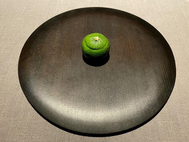 酢橘に入ったくらげとキャビア。このくらげが旨すぎて震えました。また食べたいなぁ。