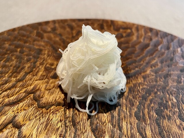 昆布締めしたツチホゼリ。ナンプラー風味の醤油で。