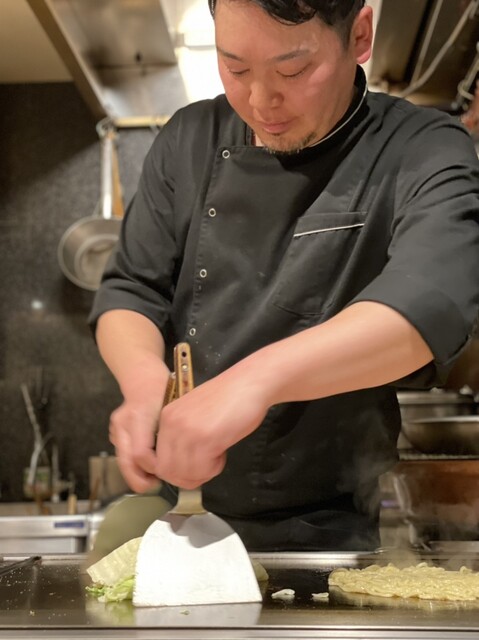 鉄板の醍醐味パート2。福島ご出身の大将ですが、広島のお好み焼きにも縁があるそうで。大葉のアクセントが最高でペロリでしたね。(不意に懐かしいマヨネーズが出てきて笑いました)