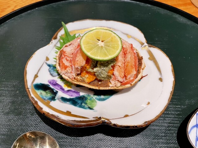 綺麗なせいこ蟹。食べ終わると鉄板で焼いてくれるのですが、この時の香りが破壊的!!これだけで一升飲めるで。