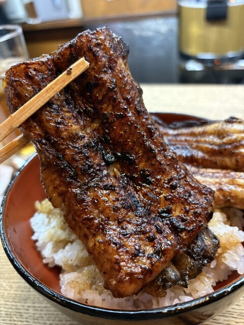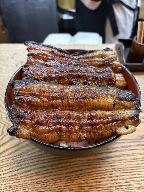 うな丼は大きめな吉井川と横山さん。