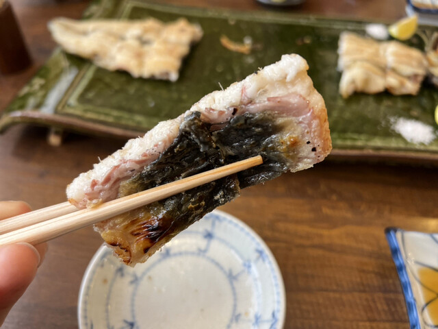 硬い皮も大将の手にかかればパリパリ。
