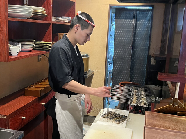提供前にはタレをかけることで養殖の脂臭さを消す。