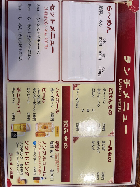 夜は中華居酒屋としても使えそうなメニューも多くお酒も豊富、なんと土曜日は朝方まで深夜営業しています。