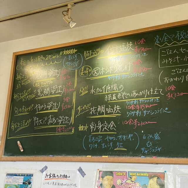 12時くらいの訪問で15分ほど待って店内へ。名物のお刺身定食は一日10食限定でなくなっちゃってた。他のレビュアーさんがかいている通り、開店時間11:30訪問が必須と言える。