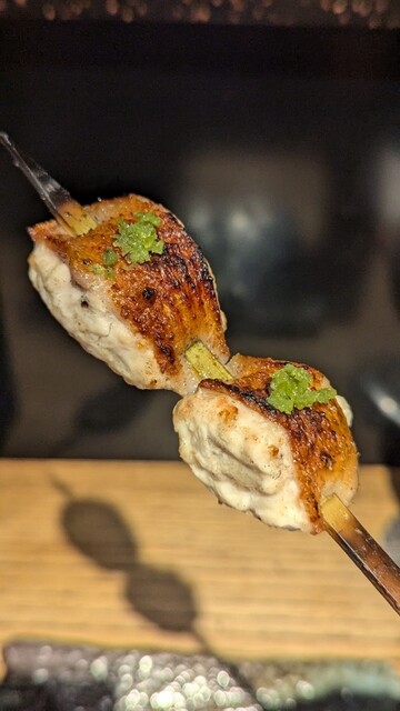1本目は柚子胡椒乗った栃木シャモの胸肉で、