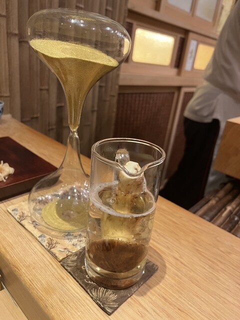 ここで松茸酒の松茸を焼松茸でお酒の染み込んだ松茸は甘みが増します。