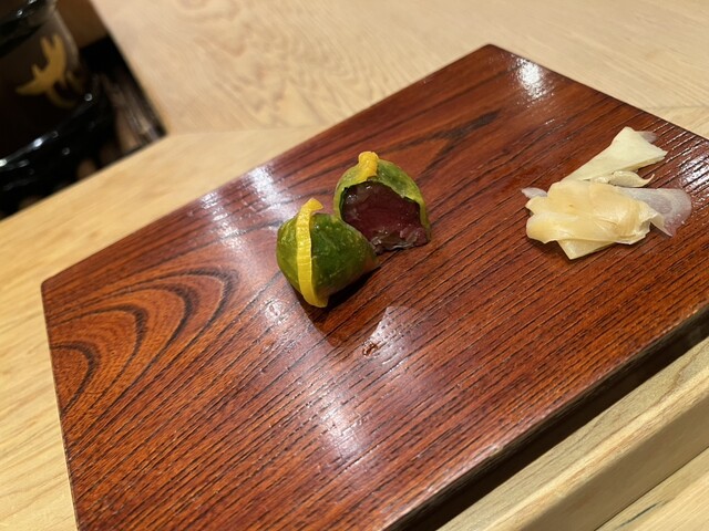 鰊の大根おろし 鰊を酢で骨が溶けるまで熟成させてシャリの代わりに大根おろしを使う美奈月さんの定番