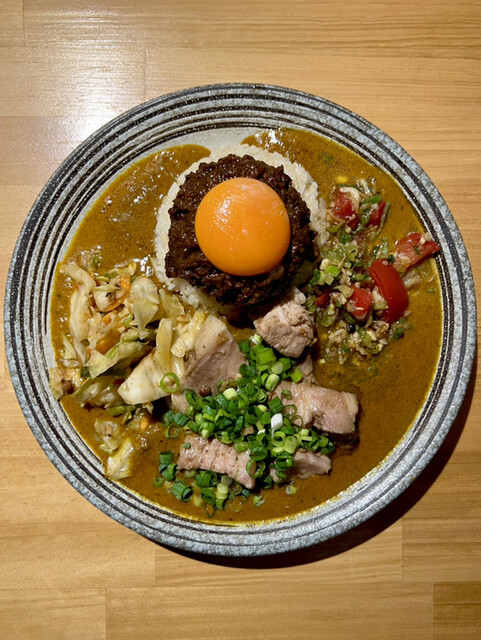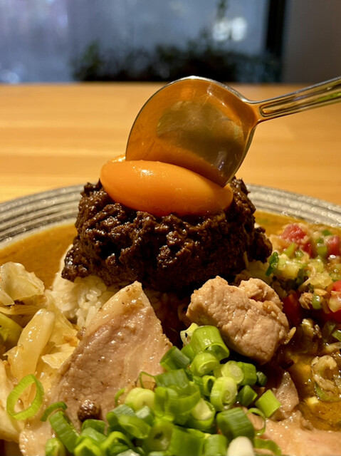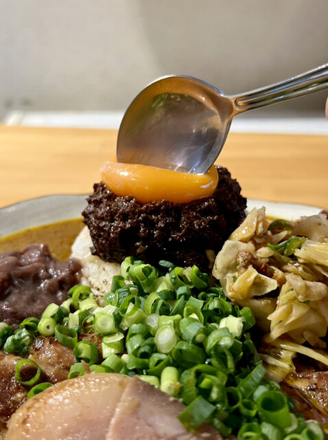 闇鍋カレー 並・角切りローストポーク・ネギと干し海老のアチャール・中華アチャール