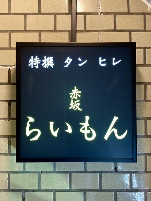 赤坂にある焼肉屋。東京メトロ銀座線、丸の内線の赤坂見附駅10番出口から徒歩2分。東京メトロ千代田線の赤坂駅1番出口からだと徒歩5分ほど。メトロビルの4階にお店はある。白金高輪にある金竜山の娘婿夫婦のお店。2018年7月オープン。定休日はなく不定休。営業時間は18時からと20時20分からの2回転。完全予約制。現在新規予約は受け付けておらず2025年まで予約は埋まっている。席はカウンター3席とテーブル10席の計13席で個室はなし。カード不可、電子マネー不可、QRコード決済不可。お店のInstagramアカウントあり。赤坂らいもん特製盛岡冷麺についてネット販売あり。