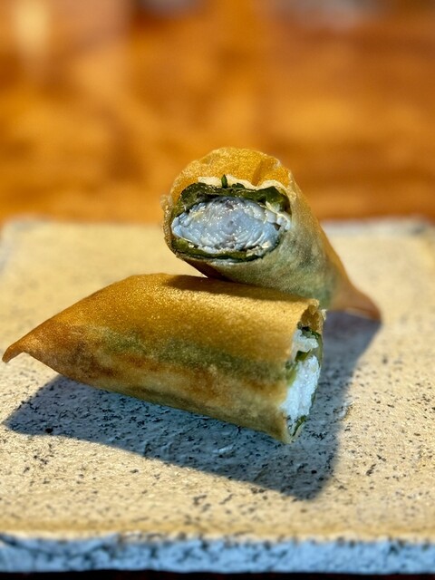 鮎と万願寺唐辛子の春巻き