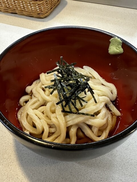 おおおぉ、これこれ! 豆も添えてあり15年前と何ら変わらない感じが素敵!!! 早速一口・・・・、柔らかい! これ歯で噛むと言う行動必要なのか?っと言うくらい柔らかい。そして、箸休め的に煮豆・・・。うん優しい味ですね!!! あっと言う間に400gが無くなってしまいました。 そして、〆のコロうどん・・・こちらも見た目も変わらず味をGOOD! 何せ私たちの目の前で麺打ちをされていましたので、少々驚きました!!!