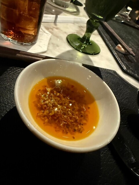 お通しでくれるパンも美味しいです。パンにつけるタレも香りがよく、パン以外につけても美味しかったです。