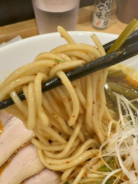 ここのラーメンは種類がたくさんあって全てが丁寧に作られていて美味しいのですが、旨辛ラーメンの大辛が無性に食べたくなる時があり訪問。今回の は十分な辛さが戻っていて、頭から汗が噴き出て気持ちいい爽快感がありました。前回は辛さがマイルドになった気がしたので大変満足しました。同行者は豆乳冷やし担々麺を注文し、こちらも美味しそうでした。