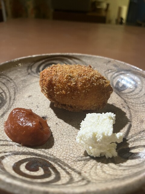 通常、じゃがいもで作られるコロッケですが、こちらでは百合根のみを使用しており、その繊細な甘みとホクホクとした食感が素晴らしく美味しいです✨☺️