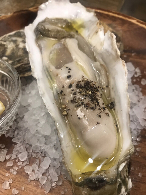 生牡蠣、自家製ソーセージ、里芋のフリット