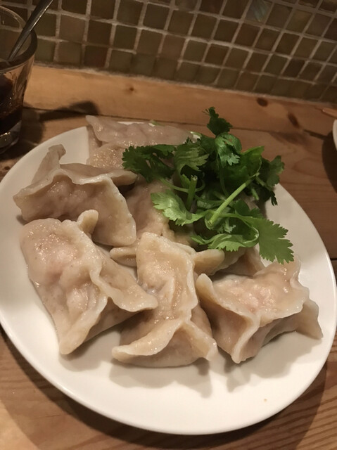 もちもちの皮に包まれた水餃子はWineとの相性が抜群!!!パクチーも最高旨味★★★