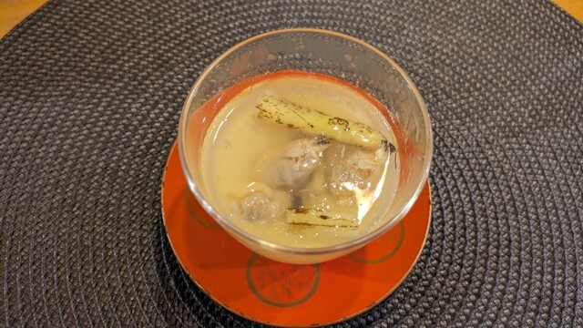今後はど定番の三つ葉と明太子の土鍋ご飯を食べましたが、土鍋を開けたときの明太子とバターの風味が素敵過ぎました。また、オコゲの食感が絶妙でした。