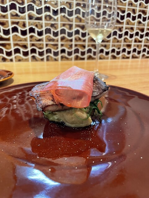 フレンチでよく見る組み合わせ。斬新な組み合わせなのに、一口食べればジューシーな鰻の脂とあっさり目の茄子の水分が絶妙に溶け合って後から生ハム。クセになります