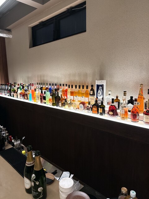 また入店時に目を惹くのは、壁沿いに飾られたカラフルなアルコールボトル。