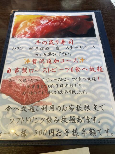 ディナーだと90分5500円(ワンドリンクはついてくる、お茶は飲み放題、ソフトドリンク飲み放題は500円)そして更に1,000円課金でローフトビーフも食べ放題らしい!!笑
