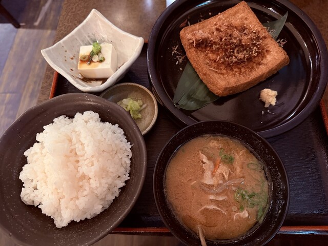 揚げ立ての厚揚げを供してくれる