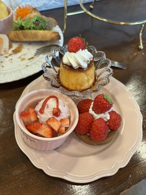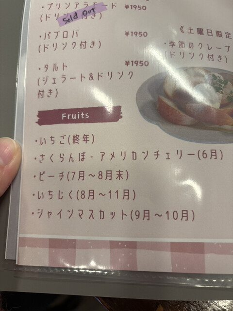 甘くて大きくて、お皿も同時に出して下さるので、そちらに桃を移していただきます。桃の中にはカスタードクリームと苺が丸ごと入っていました