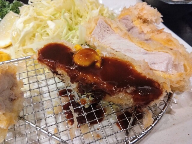 とんかつ醤油(鹿児島醤油)と茎わさびも